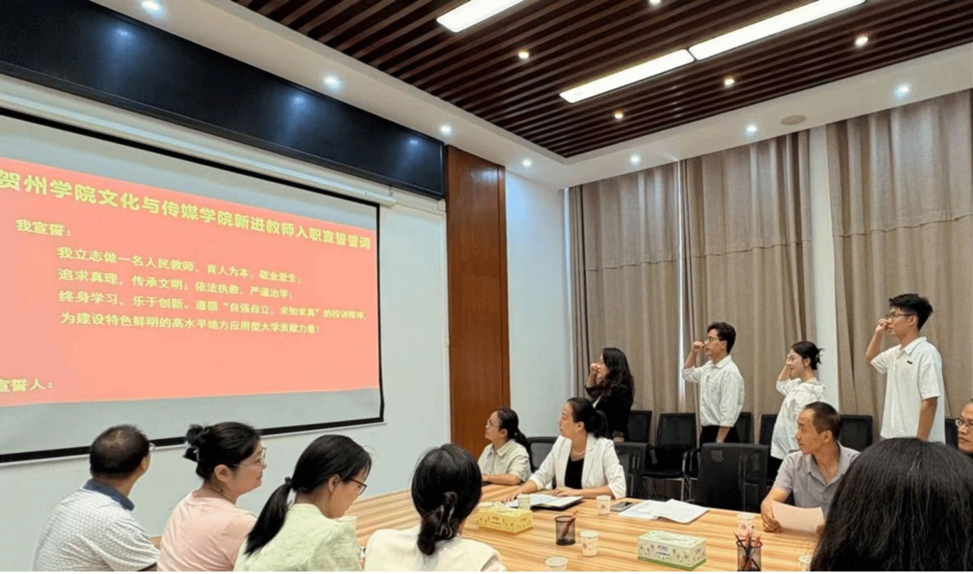 会上,李明书记带领新教师庄严宣誓,付煜院长向新教师赠书并勉励大家潜心教学、传承学院优良教风。