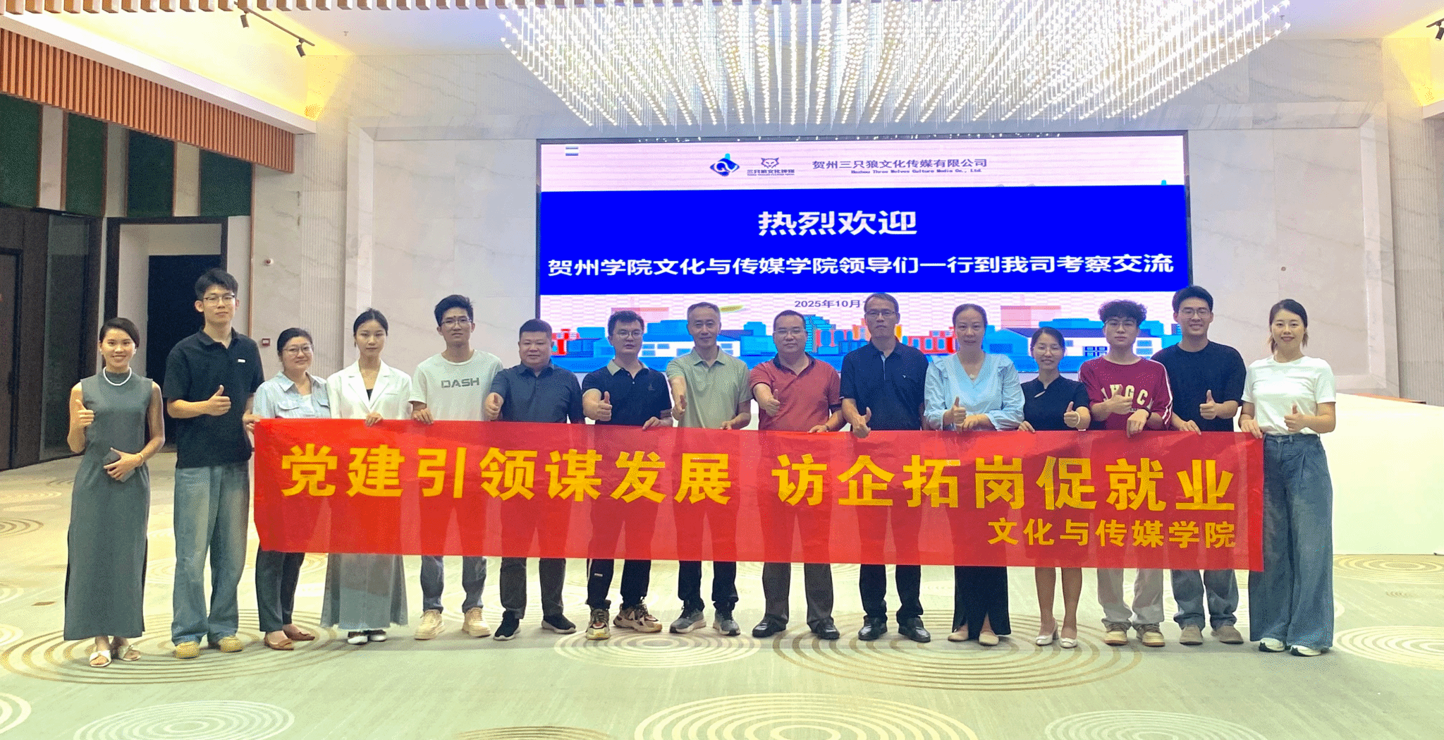 10月10日下午,我院党委副书记、院长付煜带队赴贺州三只狼文化传媒有限公司开展专业调研与访企拓岗活动,学院相关教师参与调研。
