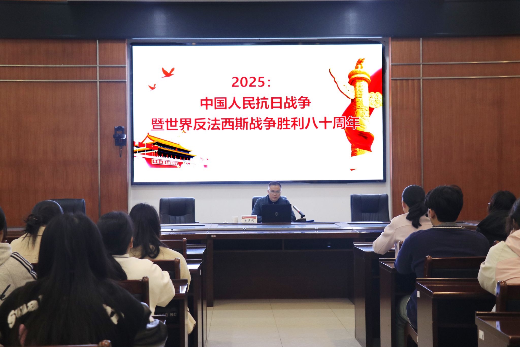 为纪念中国人民抗日战争暨世界反法西斯战争胜利80周年,弘扬伟大抗战精神,12月15日,学校党委常委、副校长朱其现以“中国共产党精神底气与抗战精神——以贺州为例”为主题,为我院学生第二党支部讲授专题党课。学院党委书记李明,党委副书记、纪委书记阳素文,支部全体党员及学生代表参加学习。
