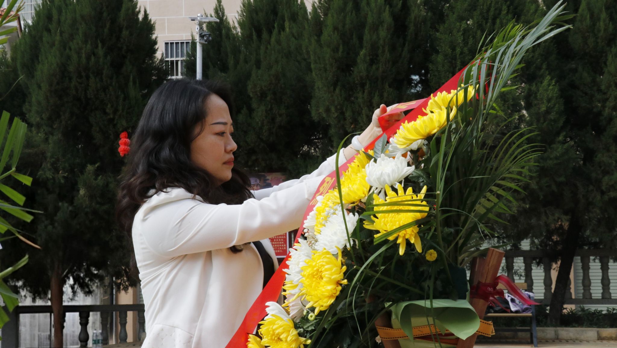图为学院党委书记李明在整理挽联