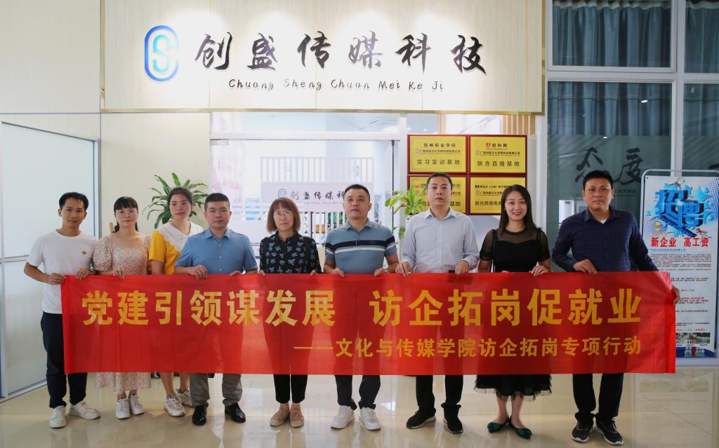 期间,黎琼锋副校长一行积极开展“党建引领谋发展访企拓岗促就业”活动,到梧州市创盛传媒科技有限公司、濡菲六堡茶叶基地走访调研,就人才培养和毕业生实习就业等问题与企业进行了深入交流。