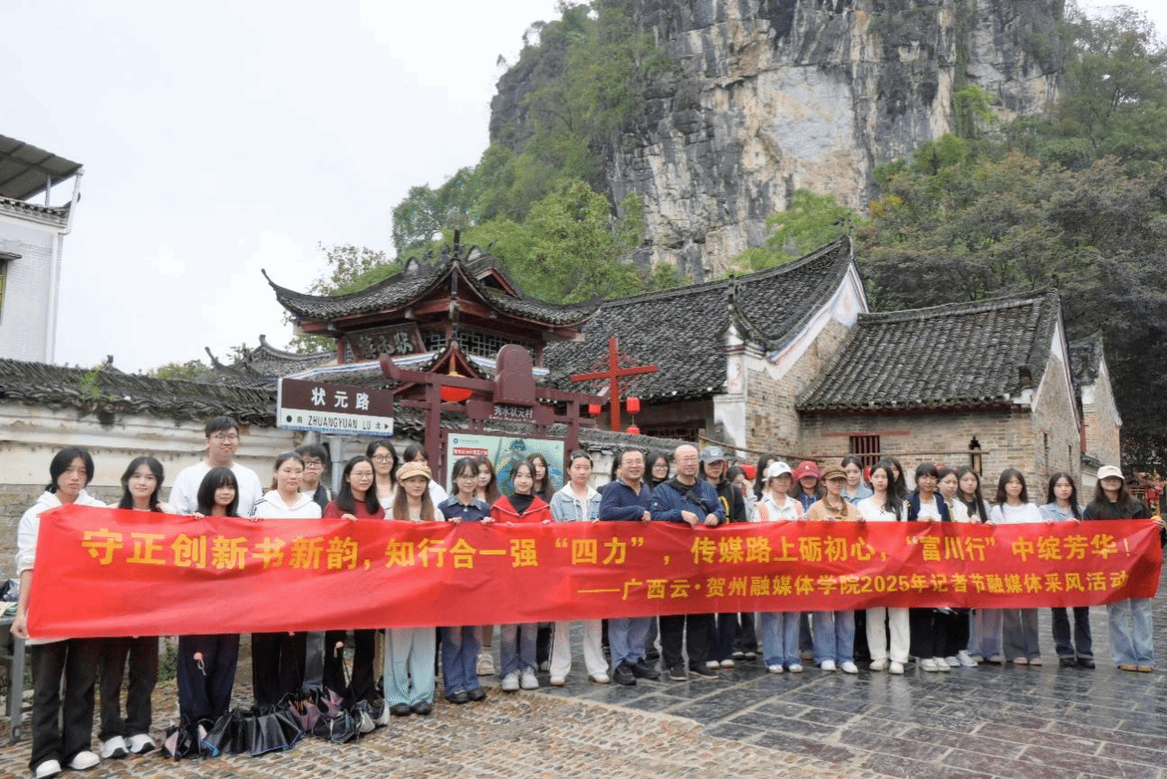 11月8日,我院网络与新媒体专业负责人董少伟老师带领40余名学生,前往富川瑶族自治县开展融媒体实践教学活动。本次活动特邀贺州市融媒体中心资深记者骆坚忠、贺州无人机协会技术骨干王丽菊和李燕全程指导,共同打造了一堂理论与实践深度融合的“行走课堂”。