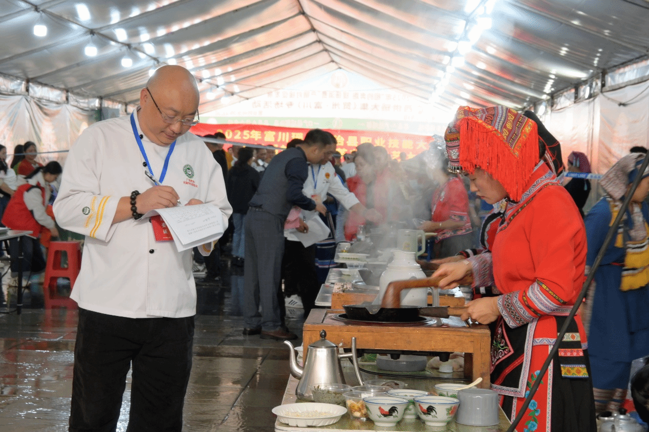 富川瑶族自治县素有“潇湘古道、脐橙之乡”的美誉,文化底蕴深厚,民族特色鲜明。师生们首站抵达富川民族文化广场,恰逢“相约奔跑提振消费,产销对接促进发展”2025年广西供销大集(贺州·富川)专场活动暨油茶制作大赛隆重举行。广场上洋溢着浓厚的民族节庆氛围,同学们深入活动现场,用镜头记录动人场景,通过采访挖掘文化故事,在真实情境中锻炼融媒体内容的策划与制作能力。