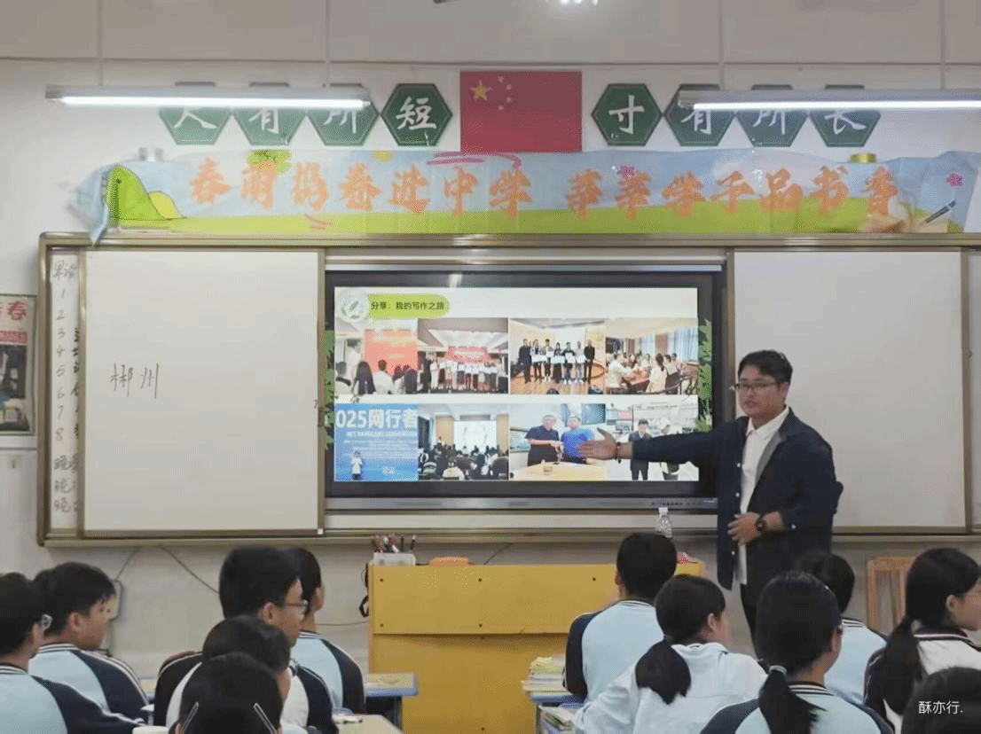 活动中,文学社成员尹振羽为同学们带来了一场生动精彩的分享,围绕推荐书籍的亮点、活动参与规则及实用写作技巧展开讲解。现场互动积极、气氛活跃,同学们在聆听中增进了对阅读内容的理解,也掌握了有效的写作方法,对后续参与“共读一本书”活动表现出浓厚兴趣。
