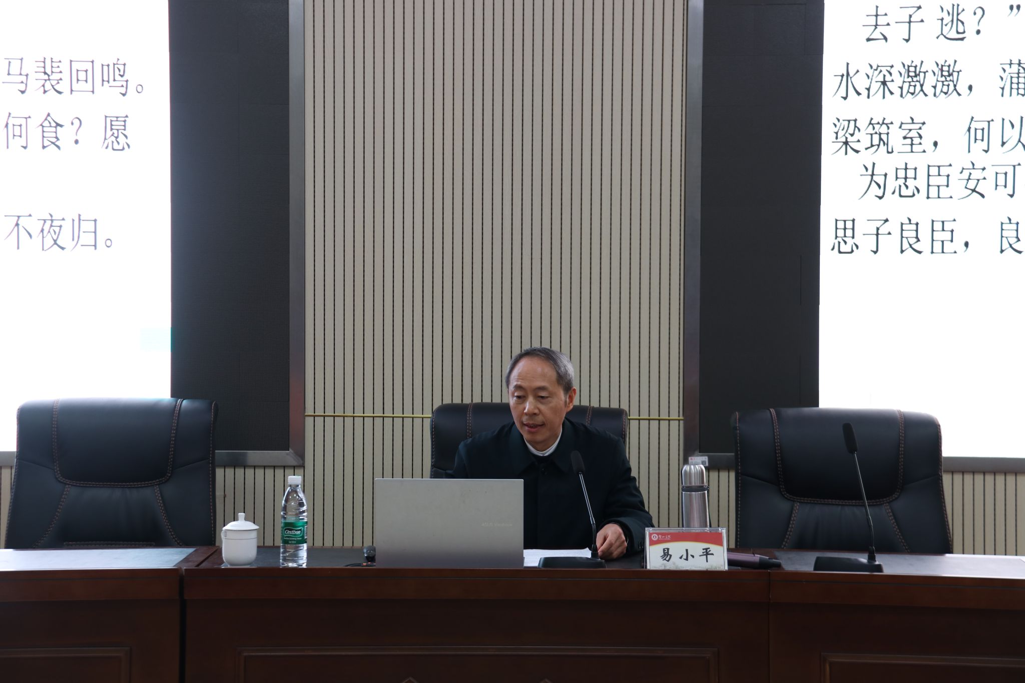 1225日,我院在逸夫楼111报告厅成功举办题为“《战城南曲》文献溯源及其寓意探原”的学术讲座。广西大学文学院教授易小平应邀主讲,院长付煜主持活动,2023级、2024级汉语言专业学生到场聆听。